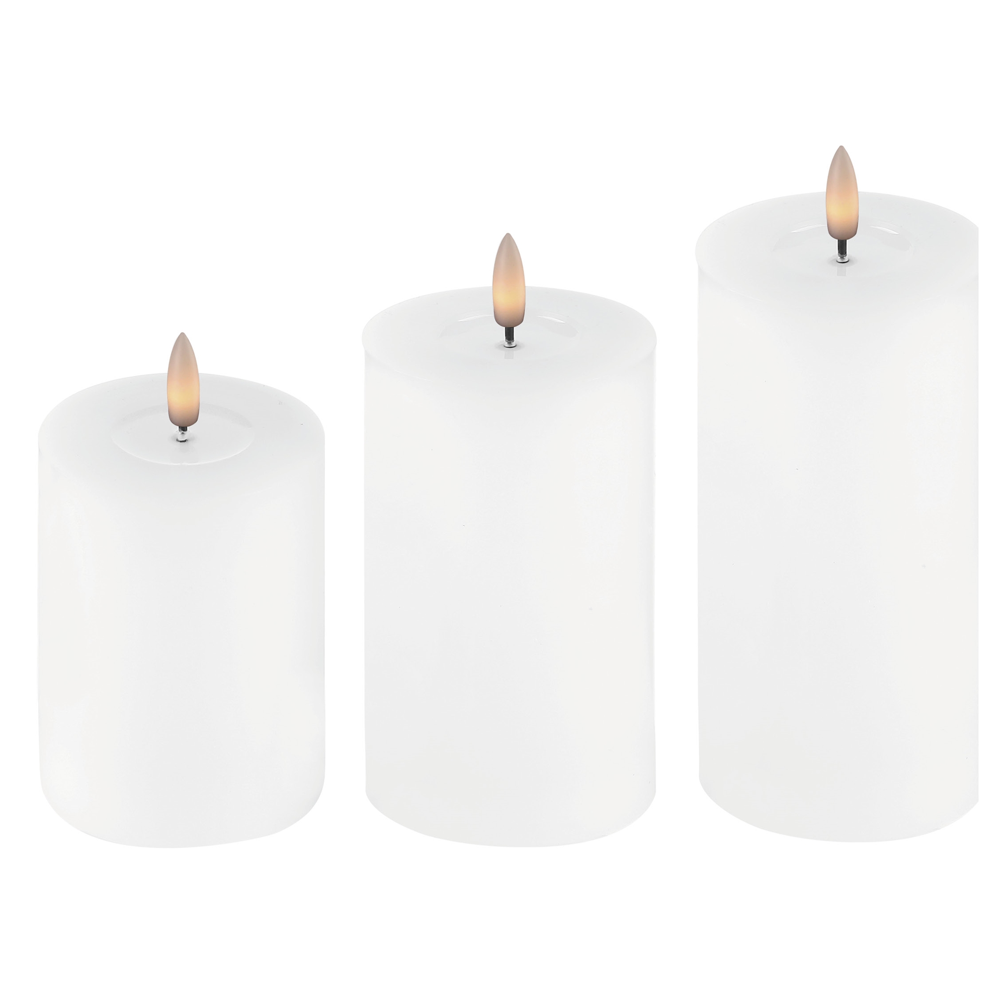 3-pakning LED Blokklys 7,5 x 10, 12,5 og 15 cm Vokslys med Resin, Hvit