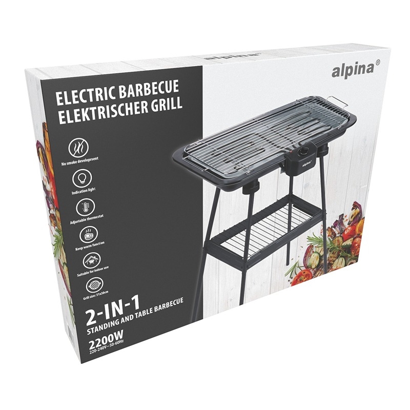 Produkt:  Alpina 2-i-1 Bord- og Gulvgrill 2000W til Inne & Ute, Sort