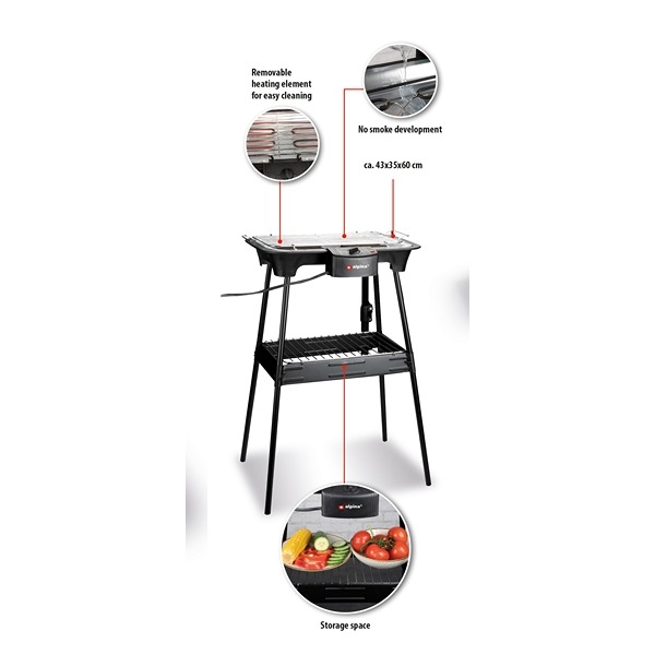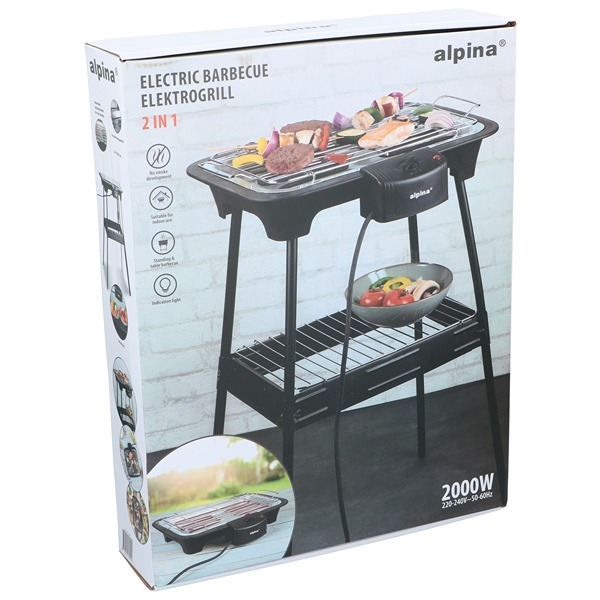 Produkt:  Alpina 2-i-1 Bord- og Gulvgrill 2000W til Inne & Ute, Sort