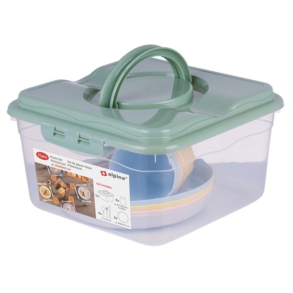 Alpina Picnic Servicesett i Plastikk til 4 Personer, med Beholder