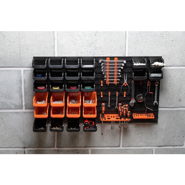 Black+Decker Storage Set 43 Parts er den ideelle løsningen for å skape orden og effektivitet i verktøyutvalget ditt. Med et omfattende utvalg på 43 deler tilbyr dette settet en komplett oppbevaringsløsning som kan tilpasses dine behov. Settet inkluderer en solid bakplate som enkelt kan monteres på veggen, noe som gir enkel tilgang til verktøyene dine.