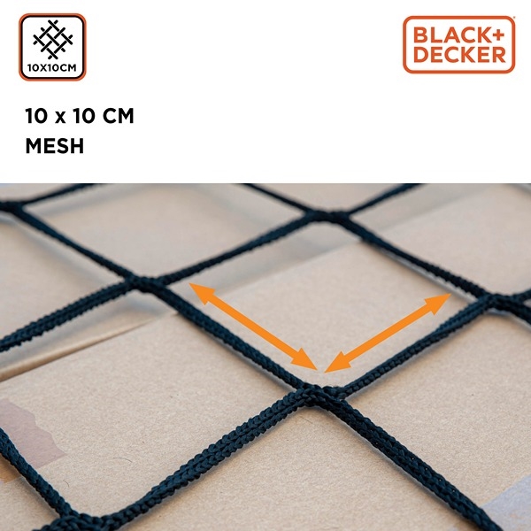 Black+Decker Trailer-nettet er det perfekte valget når du skal sikre tung eller uregelmessig last under transport. Nettet er laget av kraftig tau som lett strekkes over lasten din for å holde den sikkert på plass. Med en størrelse på 2x3 meter er dette nettet perfekt for de fleste transportbehov.
