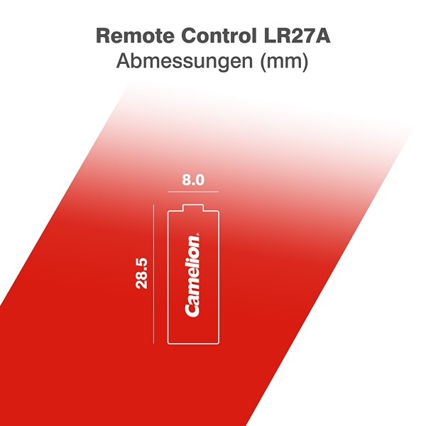 Camelion LR27 alkalinebatteri, brukes til noen typer fjernkontroller i bilindustrien. Kan også brukes i noen typer klokker.