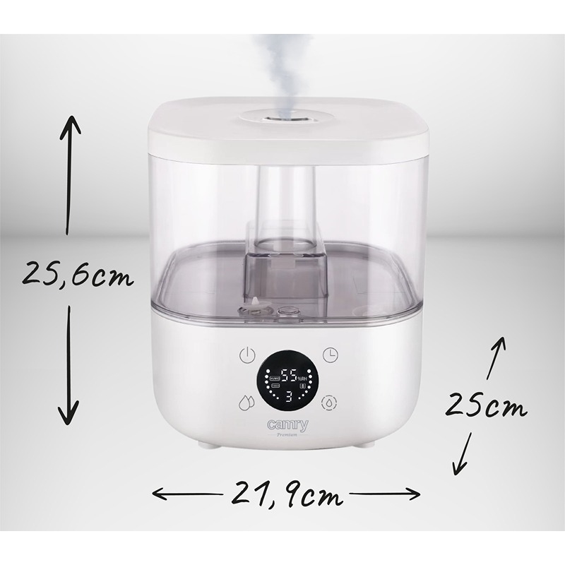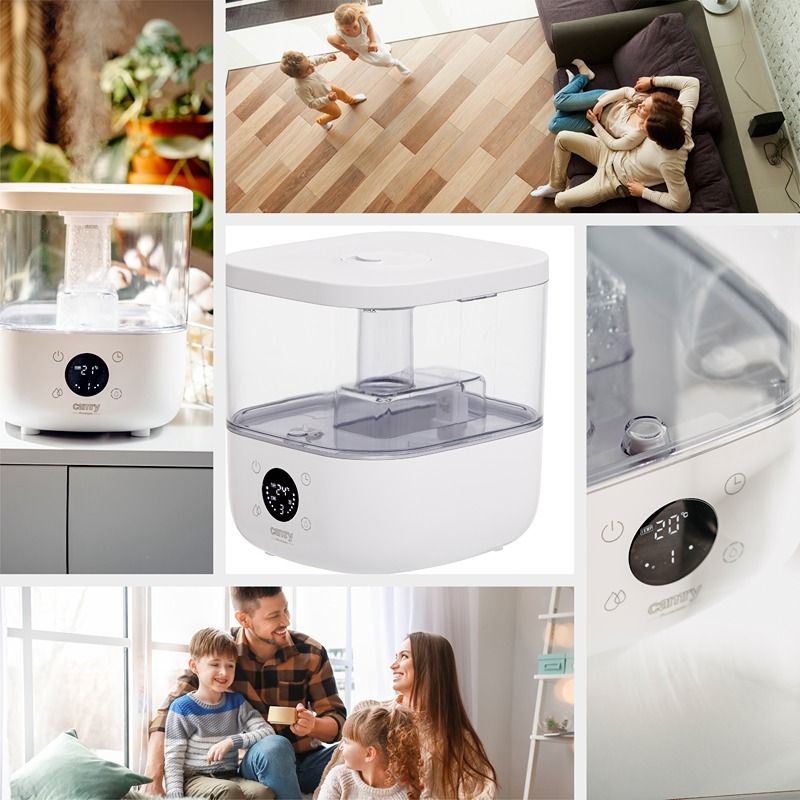 Produkt:  Camry CR 7973b Ultralyd Luftfukter med Hygrostat, Timer & Aroma, 5 L, Hvit