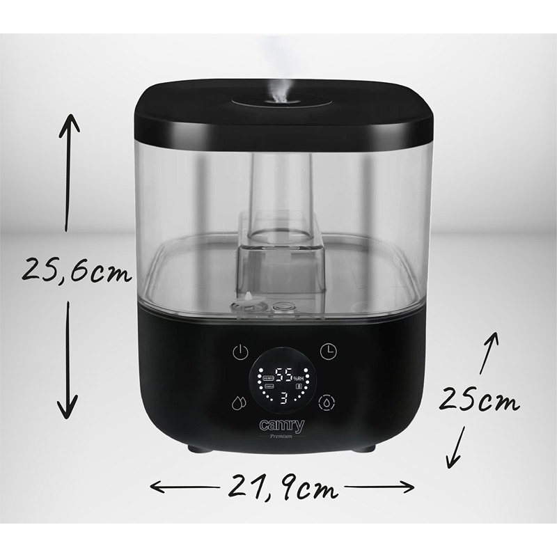Produkt:  Camry CR 7973b Ultralyd Luftfukter med Hygrostat, Timer & Aroma, 5 L, Sort