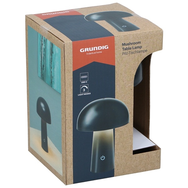 Produkt:  Grundig Oppladbar Mushroom Bordlampe H: 17,5 cm, Sort