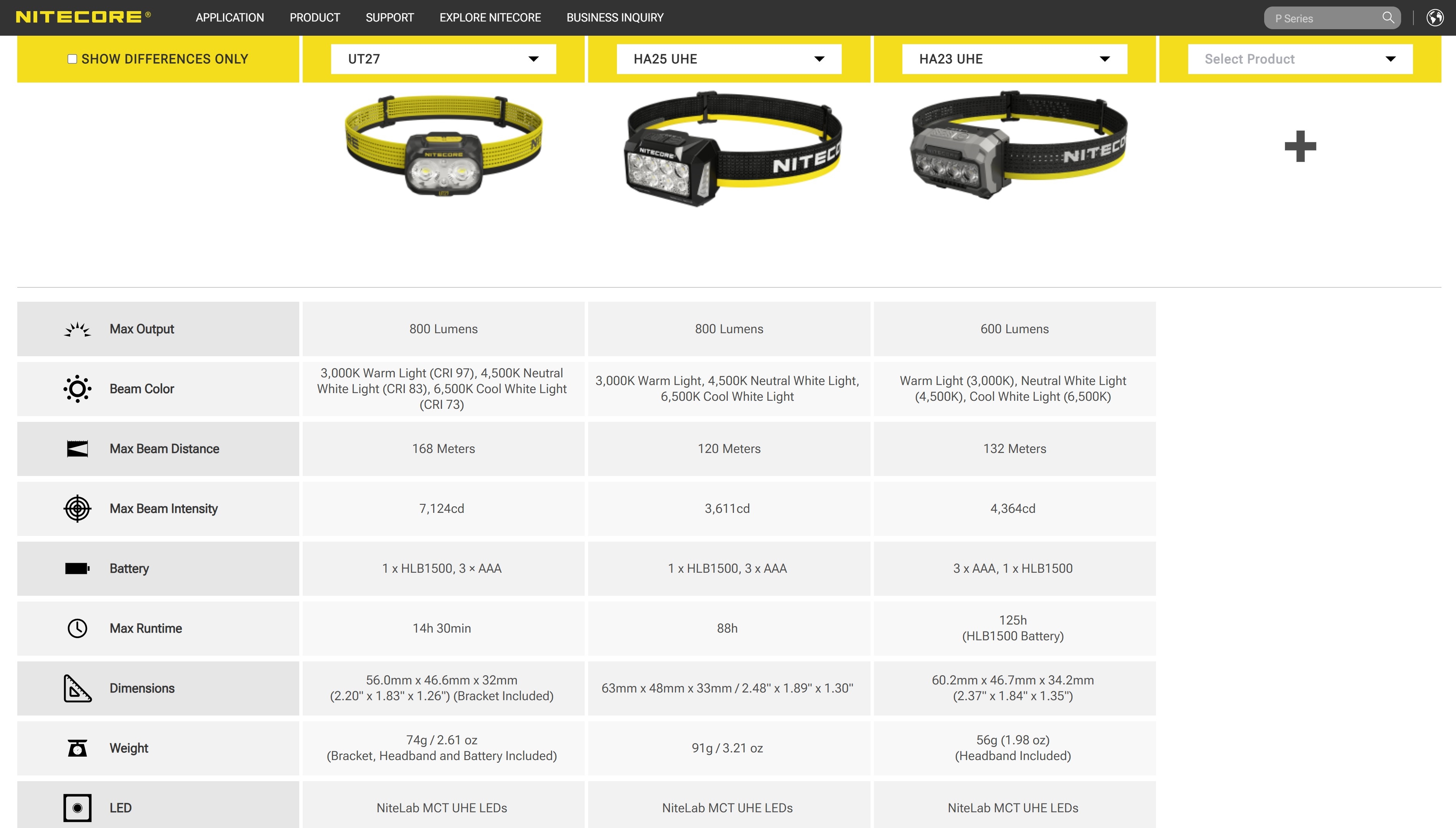 Nitecore sammenligningsfunksjon her.