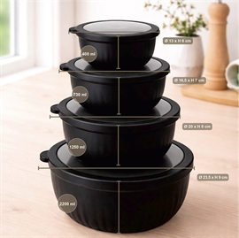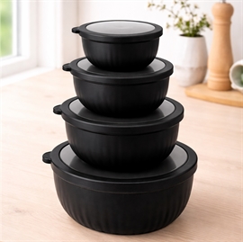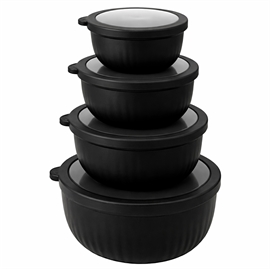 Kvik-købSkålsett med lokk i rund form 4 stk. i plast, svart