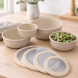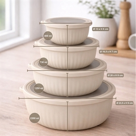 Kvik-købSkålsett med lokk i rund form 4 stk. i plast, beige