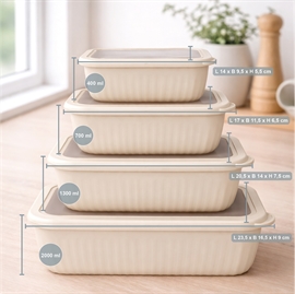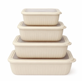 Kvik-købSkålsett med lokk i rektangulær form 4 stk. i plast, beigeSkålsett med lokk i rektangulær form 4 stk. i plast, beige