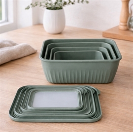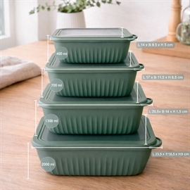 Kvik-købSkålsett med lokk i rektangulær form 4 stk. i plast, grønn