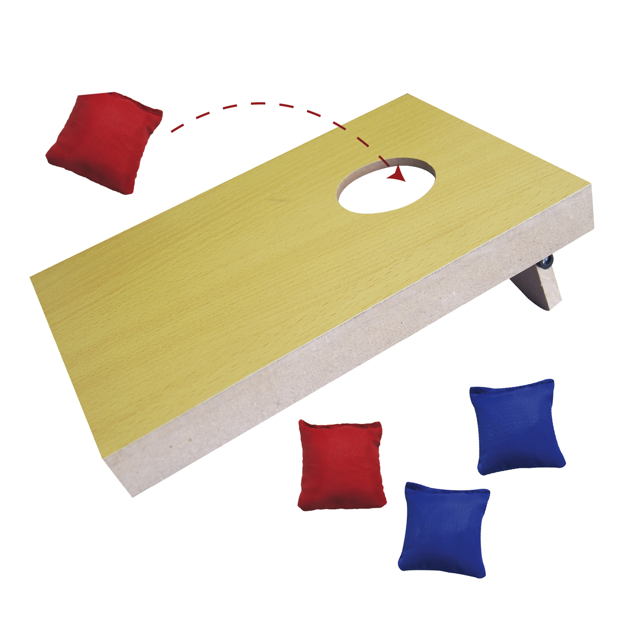Dette klassiske kastespillet i tre er et underholdende familiespill for både barn fra 3 år og voksne. Spilleplaten måler 40 x 27 x 2,5 cm og leveres med 4 erteposer i rød og blå. Den stabile trekonstruksjonen gjør spillet godt egnet til hagen, terrassen, stranden eller sommerfesten.