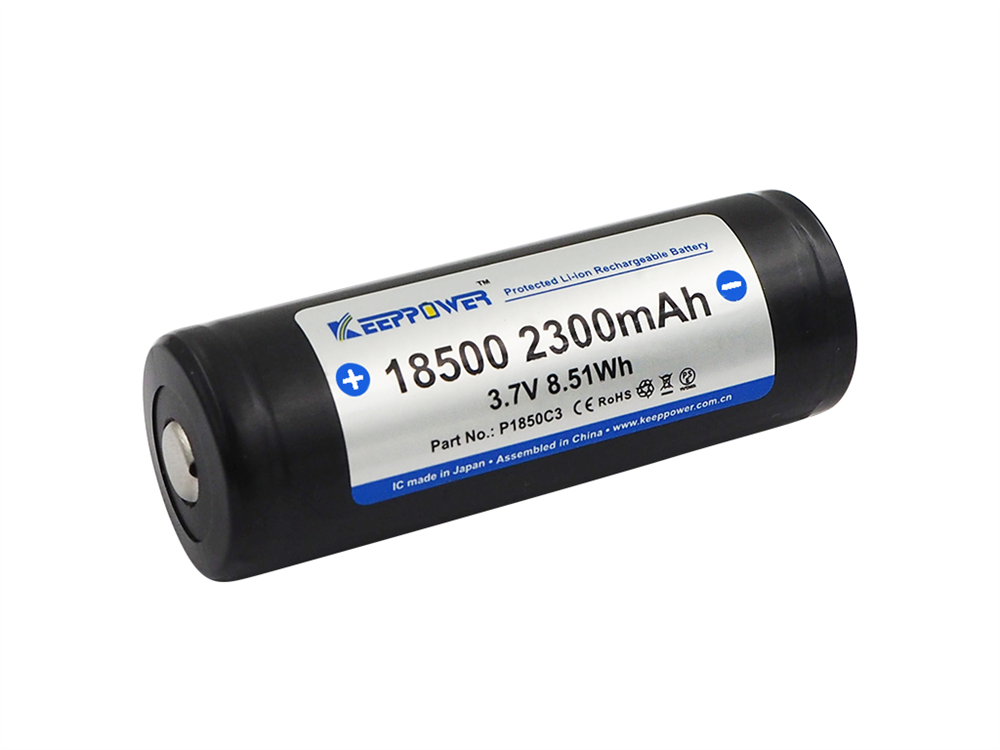 Keeppower 18500 P1850C3 Li Ion batteri 3,6V 2300mAh (Topp med knapp)