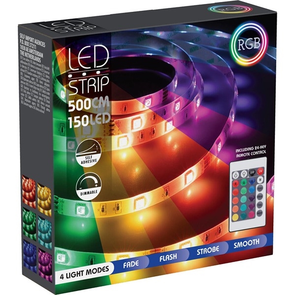 Produkt:  LED-bånd 5 m 150 LED med fjernkontroll - Selvklebende og klippbar