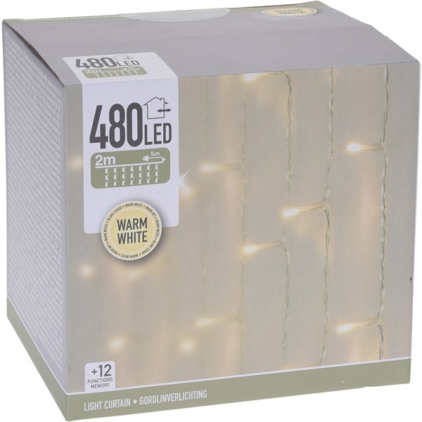 Denne LED-gardinlampen er designet for å fremheve rommet ditt på en unik måte. Med sine 480 varmhvite LED-lys vil dette gardinlyset skape en magisk atmosfære i ethvert rom.