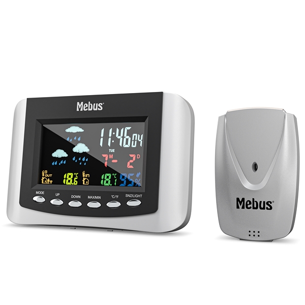 Produkt:  Mebus trådløs værstasjon med sensor, svart og sølv