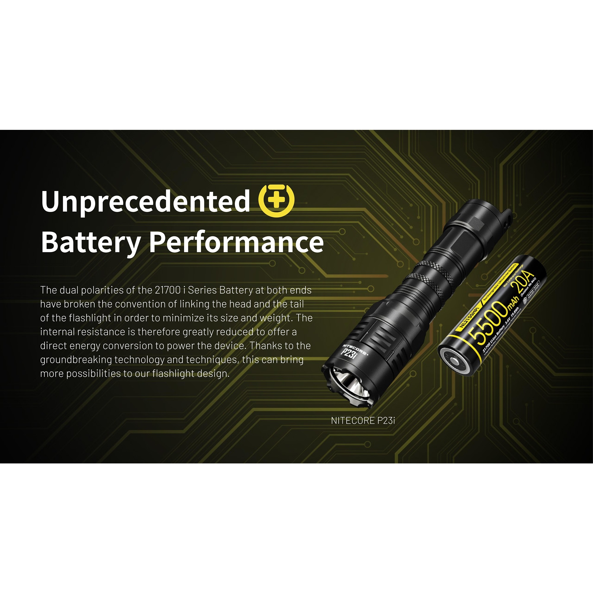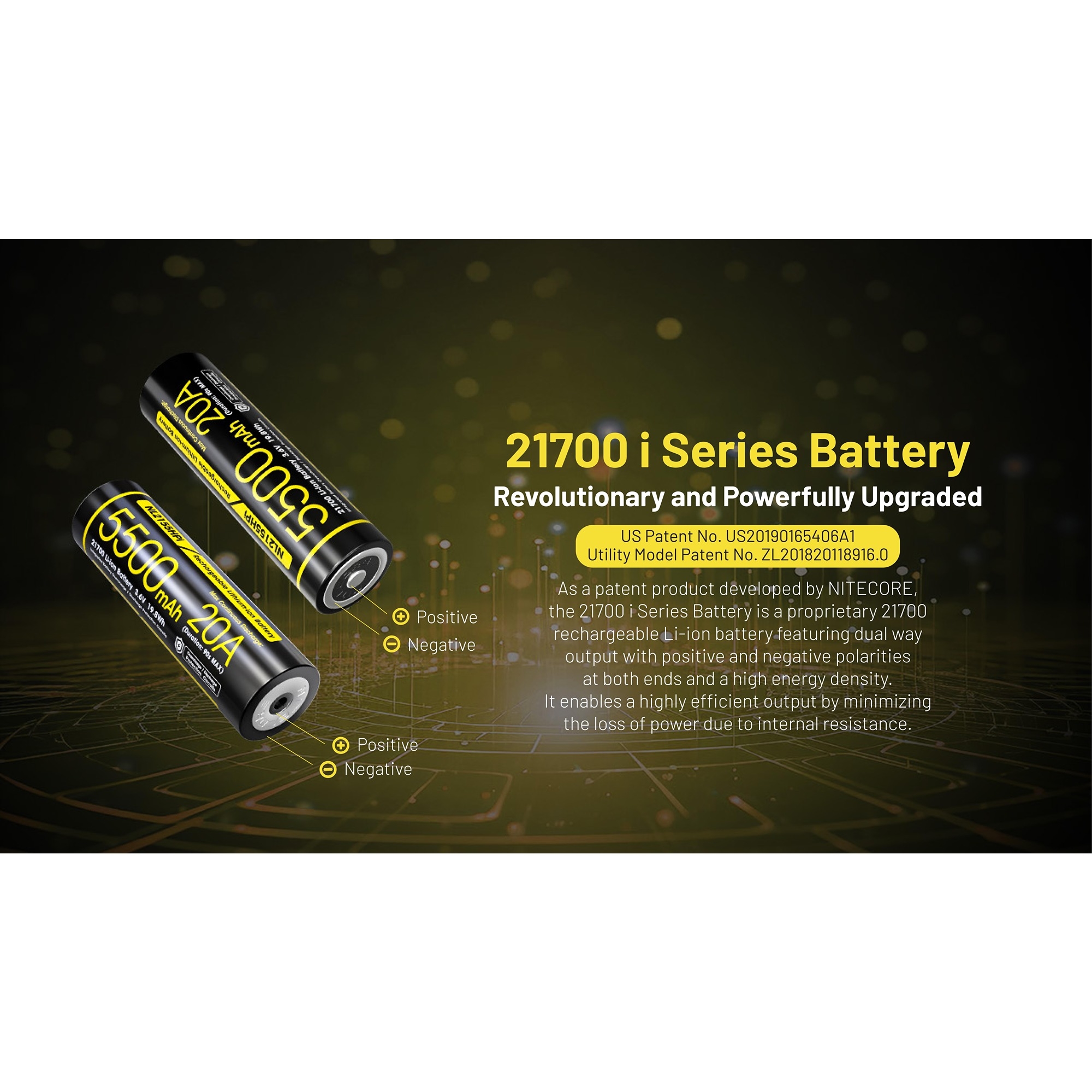 Det spesielle med Nitecore NL2155HPi er den patenterte i Series-konstruksjonen, der batteriet er bygget opp med både positiv og negativ pol er integrert i begge ender. Det skiller seg fra tradisjonelle 21700 batterier og gjør strømoverføringen mer effektiv. Den interne motstanden reduseres, energitapet minskes, og resultatet er en mer stabil og kraftfull ytelse i kompatible Nitecore lygter som for eksempel P23i og P20iX