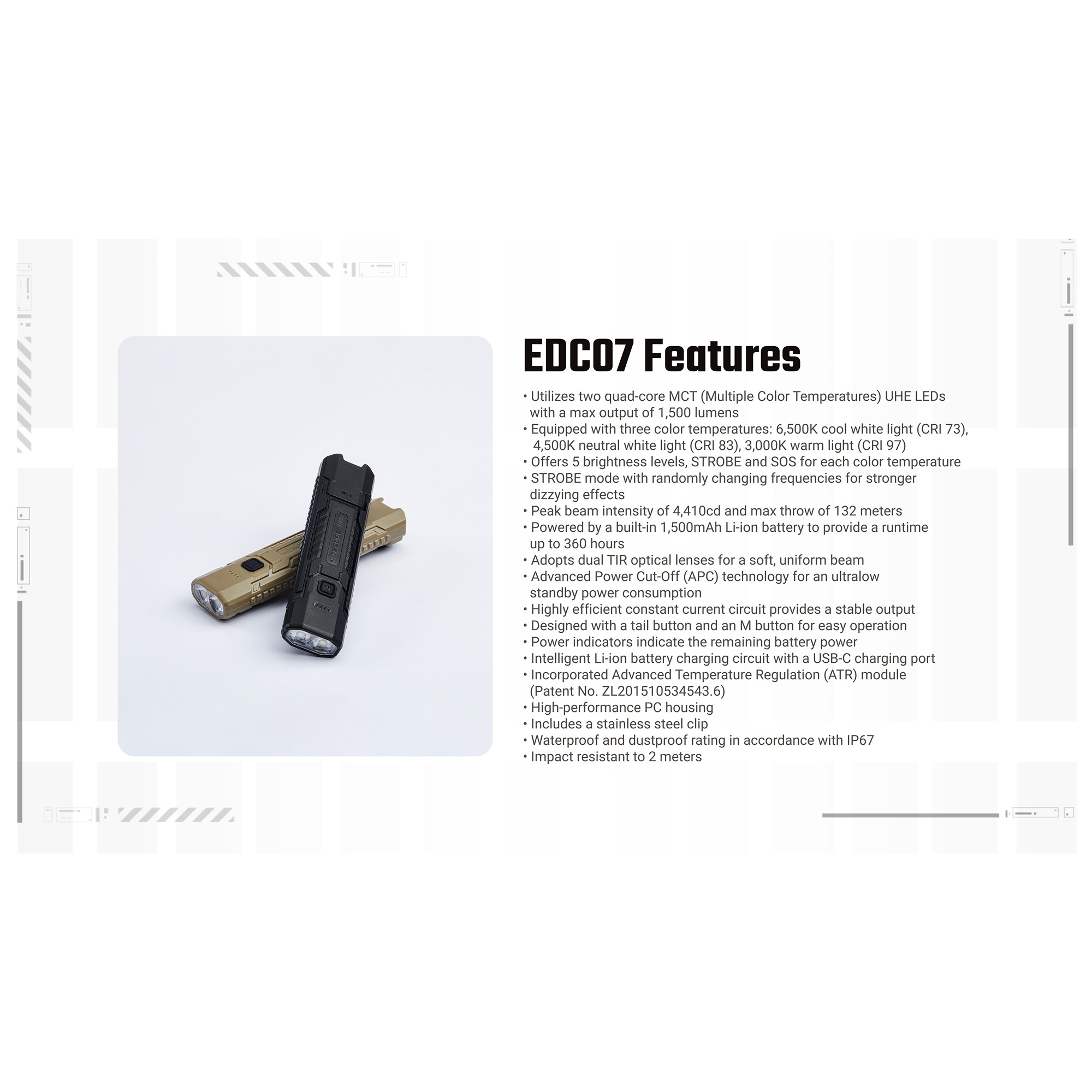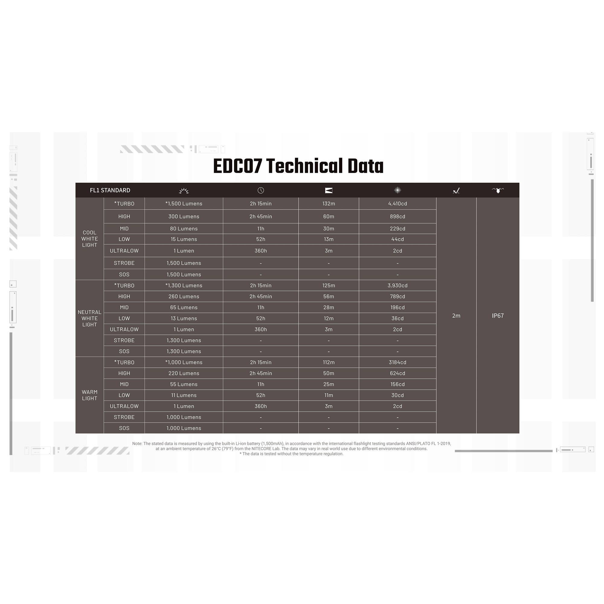 Kvik-købNitecore EDC07 Oppladbar Lommelykt 1500 lumen,