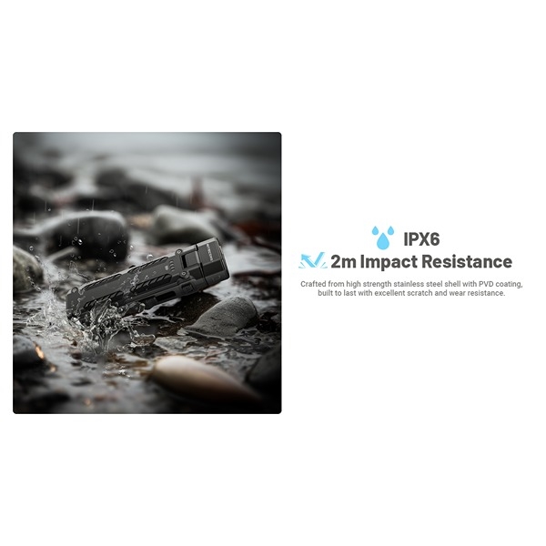 EDC09 er bygget for tøff bruk med IPX8-vanntetthet og 2 meters fallbeskyttelse. Lommelykten har et ergonomisk og brukervennlig design med skyvebryter for lysstyrke og en knapp for fargetemperatur. Et design som gjør lykten lett å bruke – også med hansker. Det finnes dessuten en klips for montering på bukser, ryggsekk, lomme, hatt eller lignende samt mulighet for å montere den medfølgende lanyard. Den medfølgende diffusoren utvider bruksområdene betydelig. Den settes over linsen, slik at lyset spres bredere i rommet og fungerer som en liten lanterne. En ideell lommelykt for profesjonelle, friluftsentusiaster og alle som ønsker pålitelig belysning i lomma.