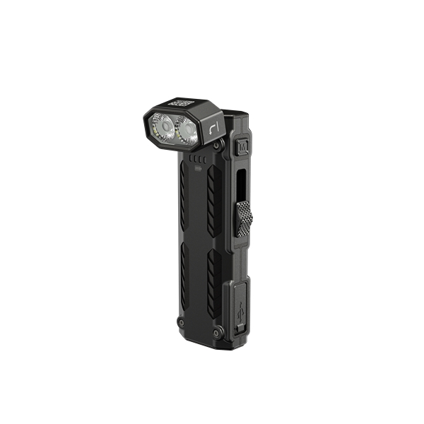 Lykten er designet med et 102° roterende hode, som gir full kontroll over lysets retning og er ideelt i kombinasjon med den magnetiske flate enden, som gjør det mulig både å sette lykten på plane overflater og feste den på loddrette metalloverflater. Et innebygd 1100mAh Li-ion-batteri gir opptil 13 timers driftstid ved 40 lumen og kan lades via USB-C – også mens lykten er i bruk. Ladekabel medfølger. De intuitive strømindikatorene på forsiden gjør det enkelt å holde øye med batterinivået.