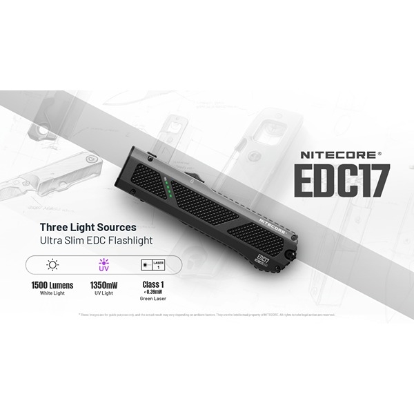 Nitecore EDC17 – Multifunksjonell lykt med UV-lys, hvitt lys og grønn laser