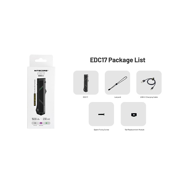 Enten du jobber, utforsker eller er på farten, er Nitecore EDC17 den perfekte kombinasjonen av kraft, presisjon og funksjonalitet – én lykt til alle behov.