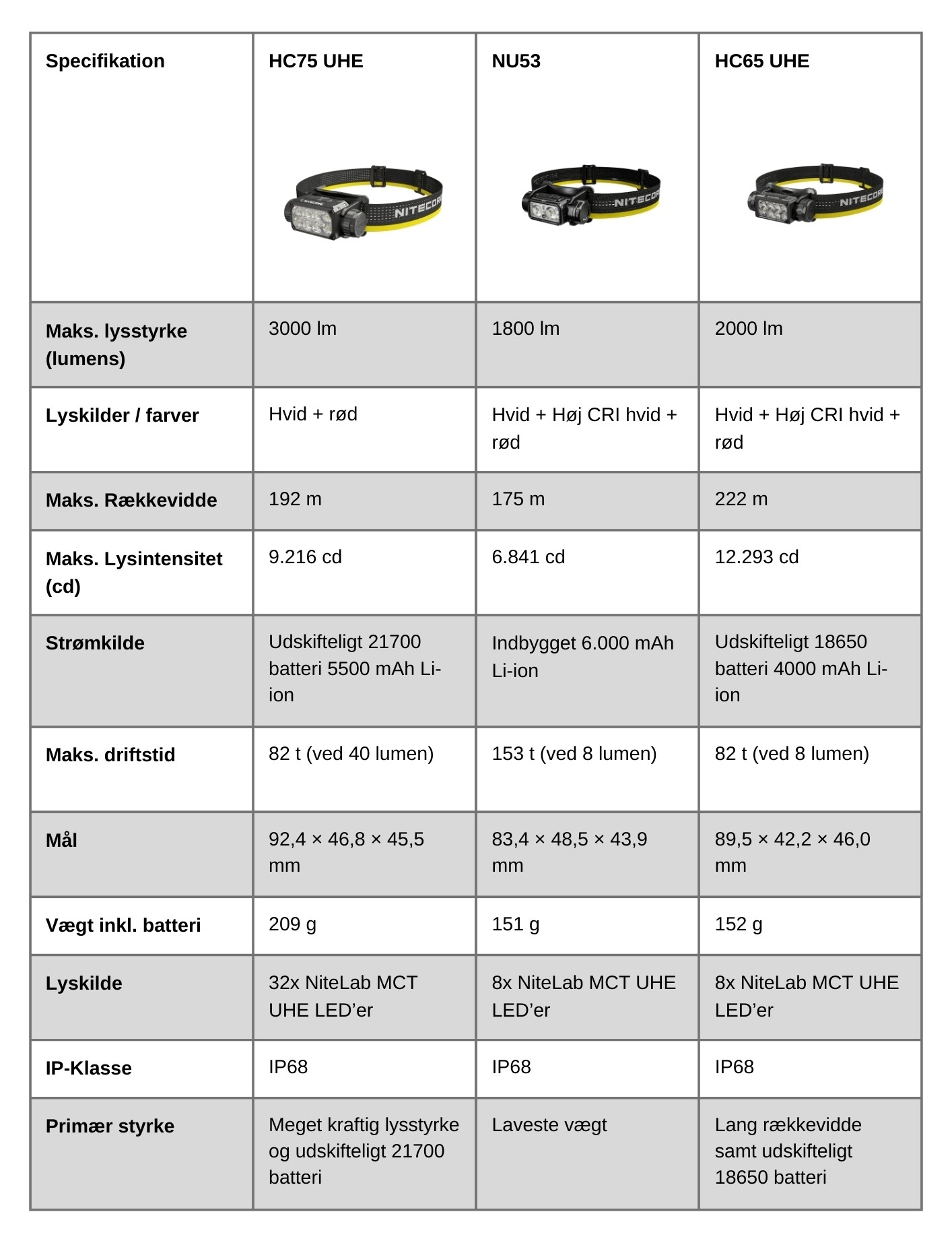 Har du behov for en mer utdypende forklaring på de ulike spesifikasjonene, kan du finne forklaringer i guiden vår: Guide: Finn den beste Nitecore-hodelykten for ditt behov.