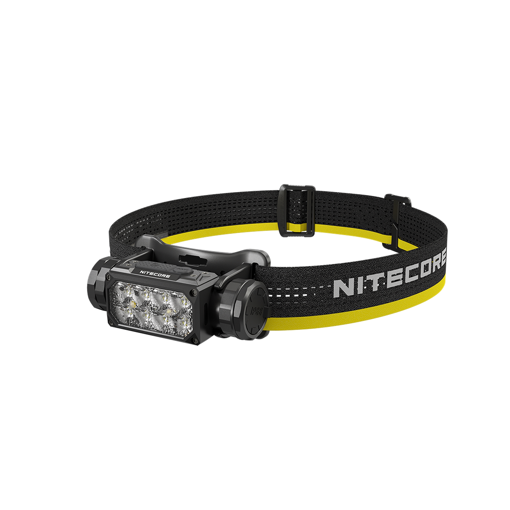 Produkt:  Nitecore HC65 UHE Oppladbar Hodelykt 2000 lumen, Sort/Gul