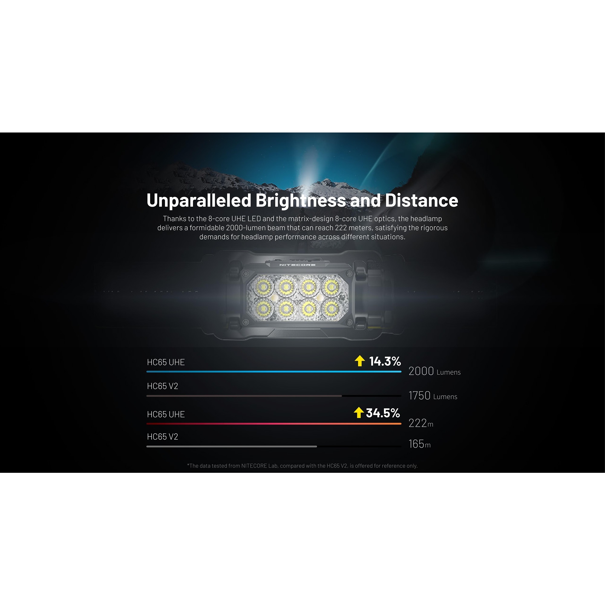 Nitecore HC65 UHE er en kraftig og profesjonell Nitecore hodelykt med en maksimal lysstyrke på hele 2000 lumen. Hodelykten er en solid allround løsning til mange ulike sammenhenger. Enten du bruker den til vedlikehold, industriarbeid, jakt, terrengsykling, fotturer, trekking eller generelt outdoor-bruk, får du en allsidig Nitecore hodelykt med høy lysstyrke, fleksible lysinnstillinger og robust konstruksjon. Det gjør den til et opplagt valg for både profesjonelle og friluftsentusiaster som ønsker én pålitelig løsning til flere formål.