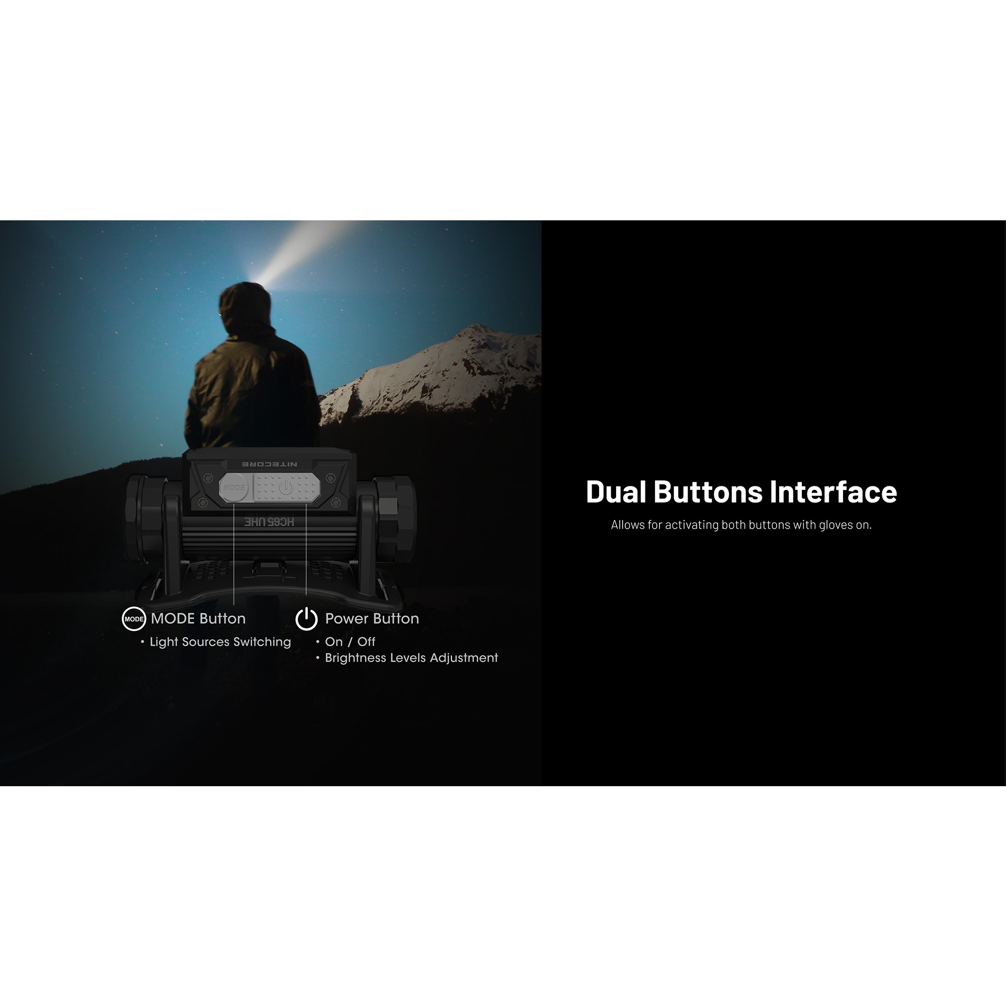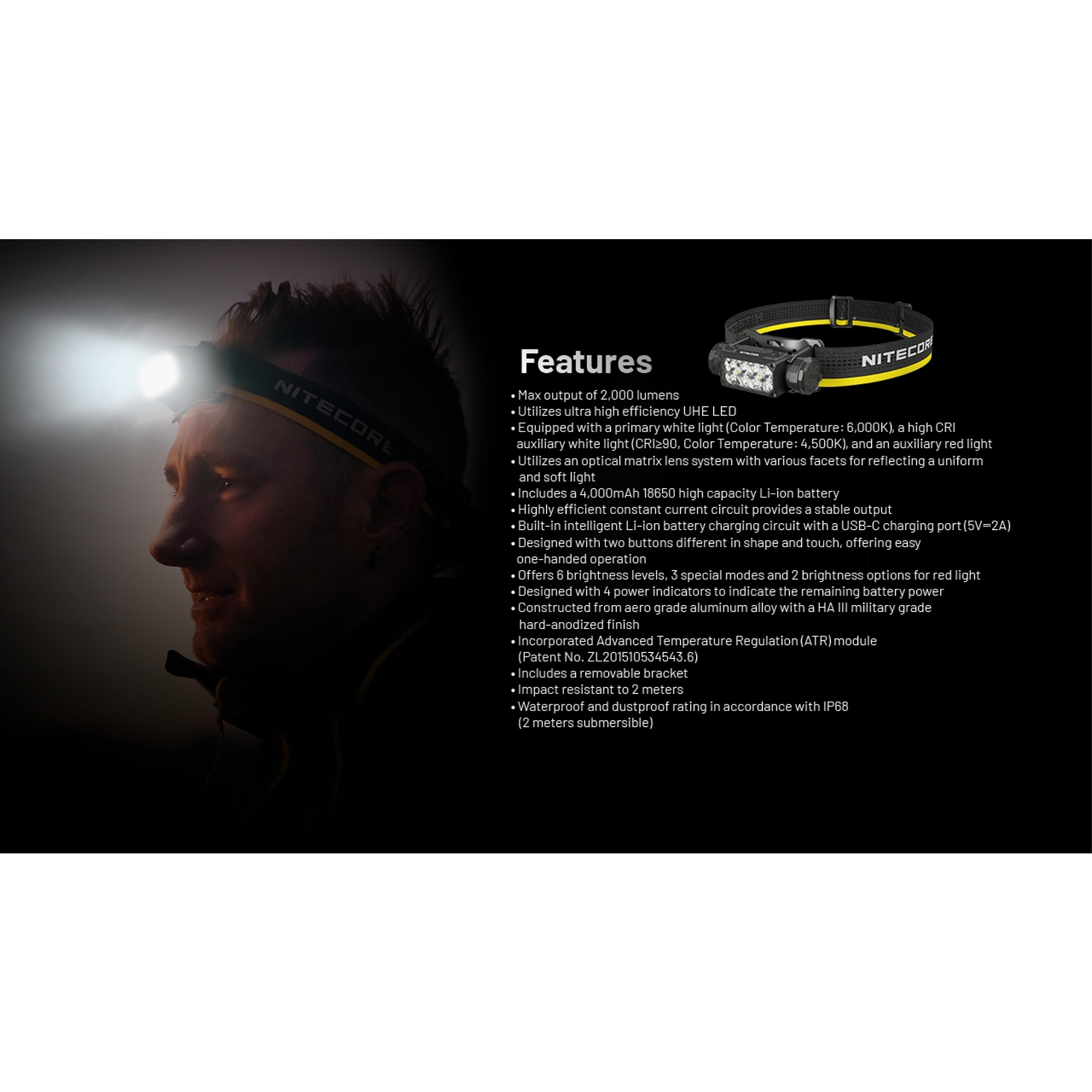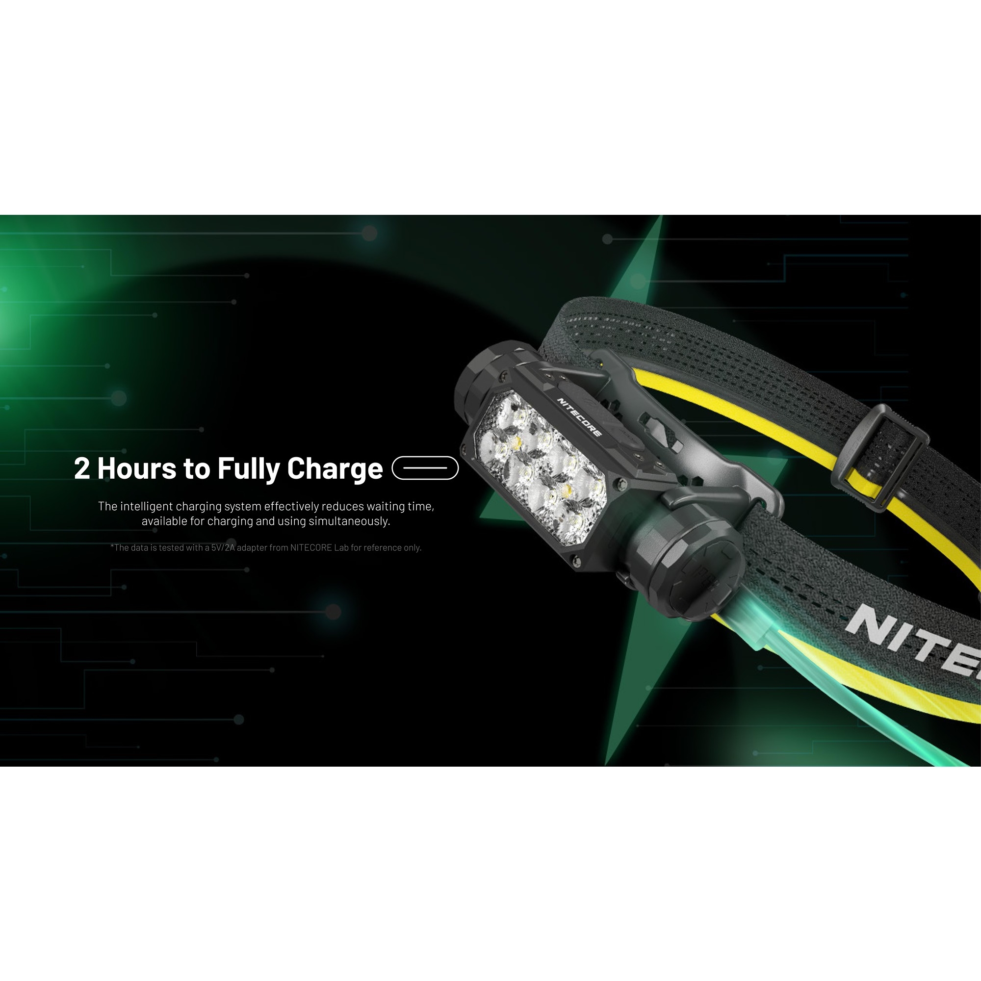 I hodelykten sitter et 18650-batteri (NL1840HP). Batteriet kan lades via USB-C-kontakten i hodelykten, men også i en ekstern batterilader. Det gjør det mulig å kjøpe ekstra batterier og sikre at du alltid har nok strøm, hvis du ikke har tilgang til en fast strømkilde eller ikke har tid til å vente på lading. Som et alternativ til flere batterier kan du forlenge driftstiden ved å koble den sammen med Nitecore 6K Kit eller 12K Kit – eksterne powerbanks som markant forlenger brennetiden på lengre turer eller arbeid i felt.