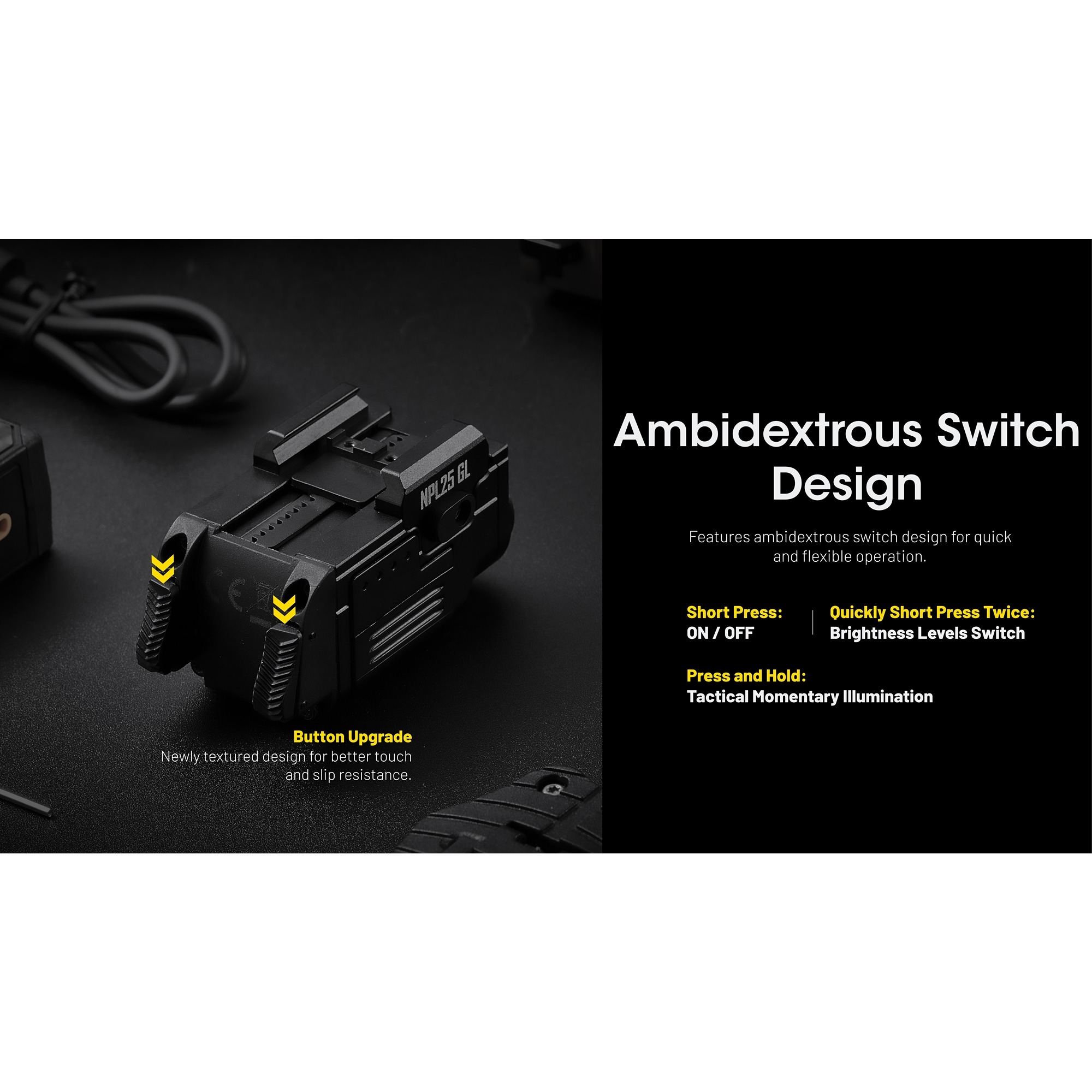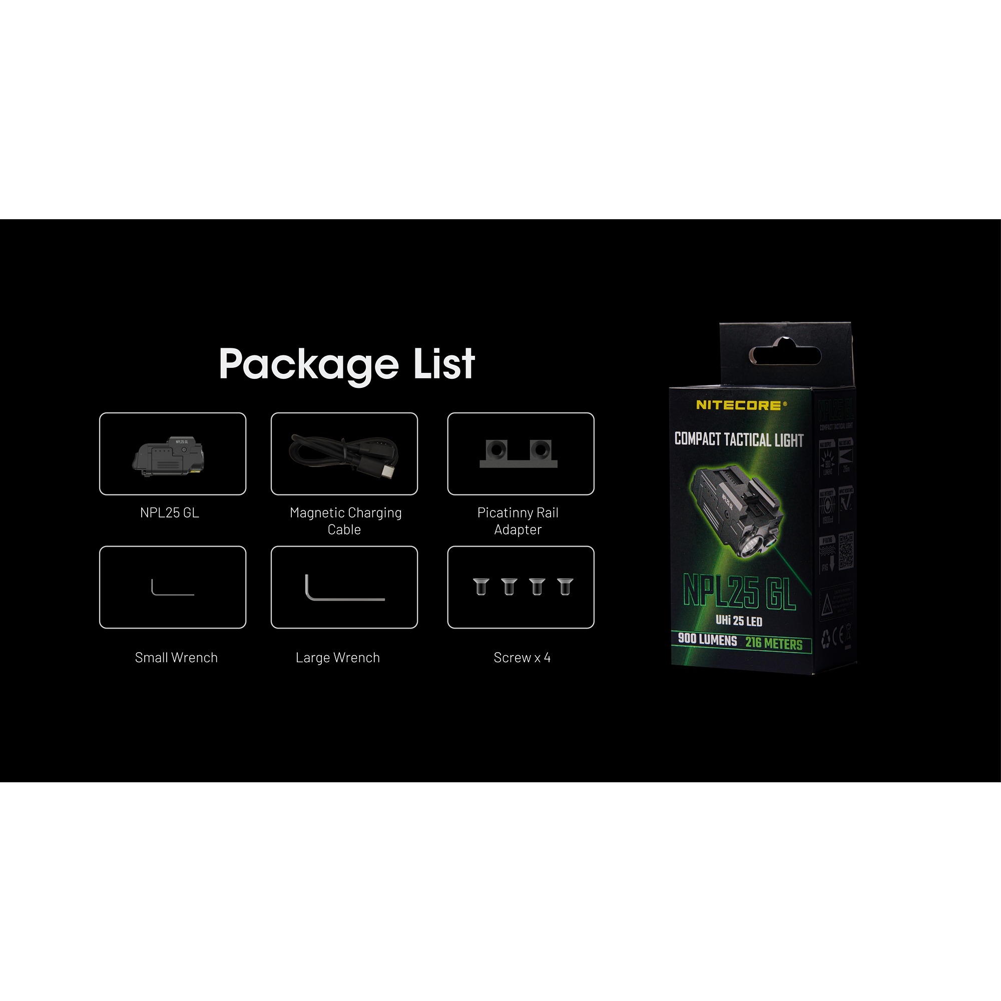 Nitecore NPL25 GL er en kompakt Nitecore våpenlykt for deg som ønsker både kraftig hvitt lys og en integrert grønn laser i én samlet løsning. Modellen leverer opptil 900 lumen, har en rekkevidde på 216 meter og kombinerer det klare lyset med en presis grønn 520 nm laser. Det gjør den godt egnet for brukere som ønsker en oppladbar våpenlykt med ekstra kontroll og allsidighet i et format som ikke tar unødvendig plass under våpenet.