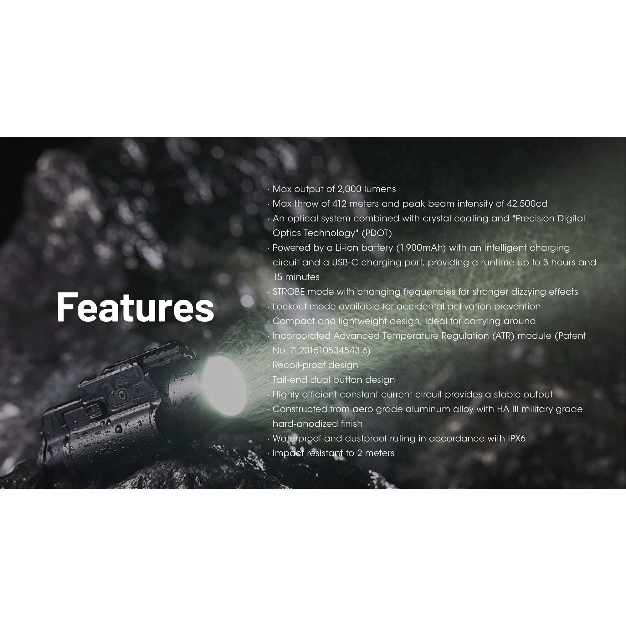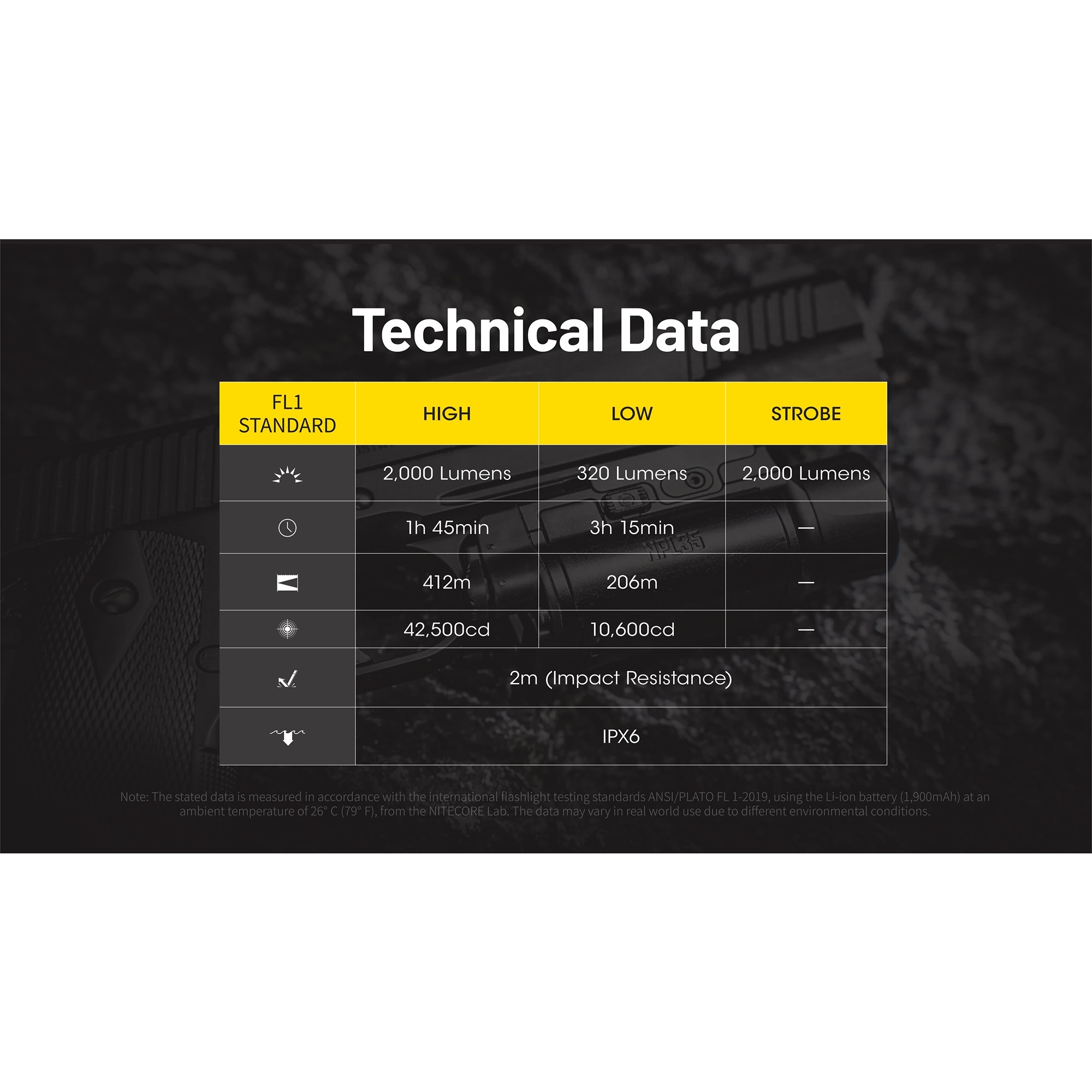 Produkt:  Nitecore NPL35 Oppladbar Våpenlykt 2000 lumen
