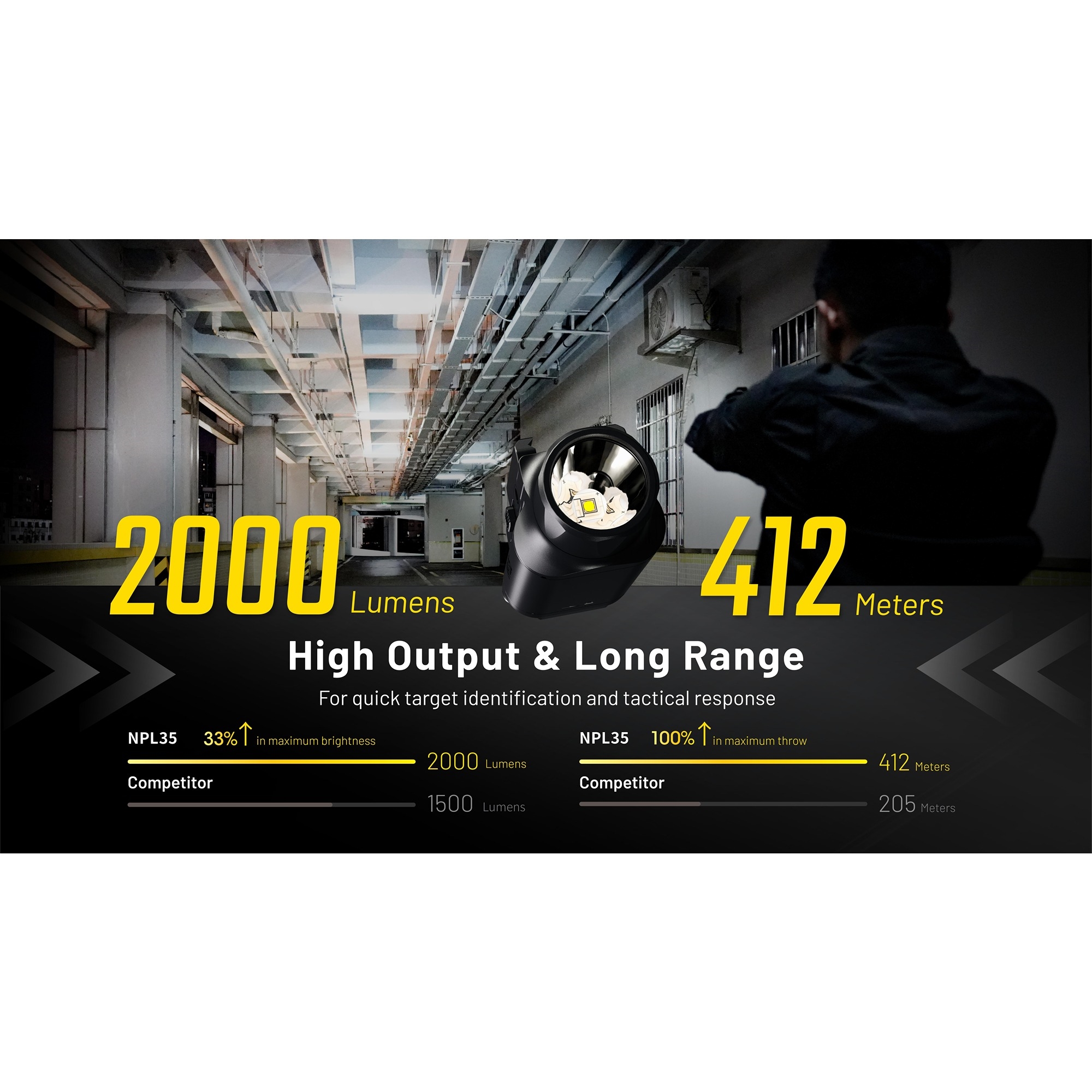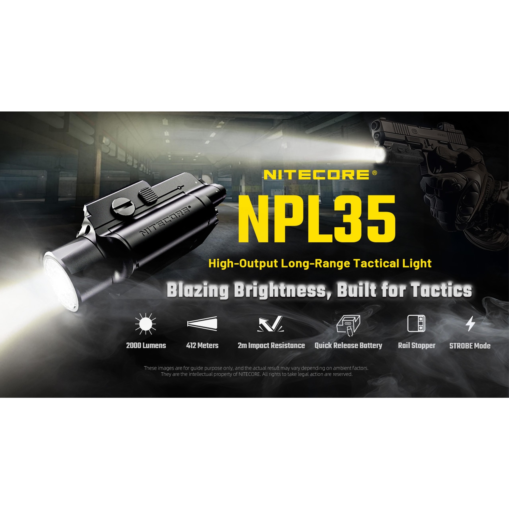 Nitecore NPL35 er en sterk og kompakt Nitecore våpenlykt for deg som ønsker masse lys uten å gå på kompromiss med størrelse og balanse. Med opptil 2.000 lumen får du et kraftig lys som gir god oversikt og gjør det enklere å orientere seg raskt. Det gjør Nitecore NPL35 godt egnet til sports- og treningsbruk samt andre lovlige situasjoner der tydelig belysning er en fordel.