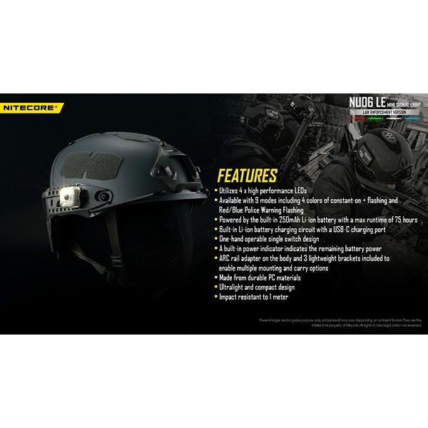 Produkt:  Nitecore NU06 LE Multifunksjonell Signallykt til bl.a. Hjelm og Ryggsekk