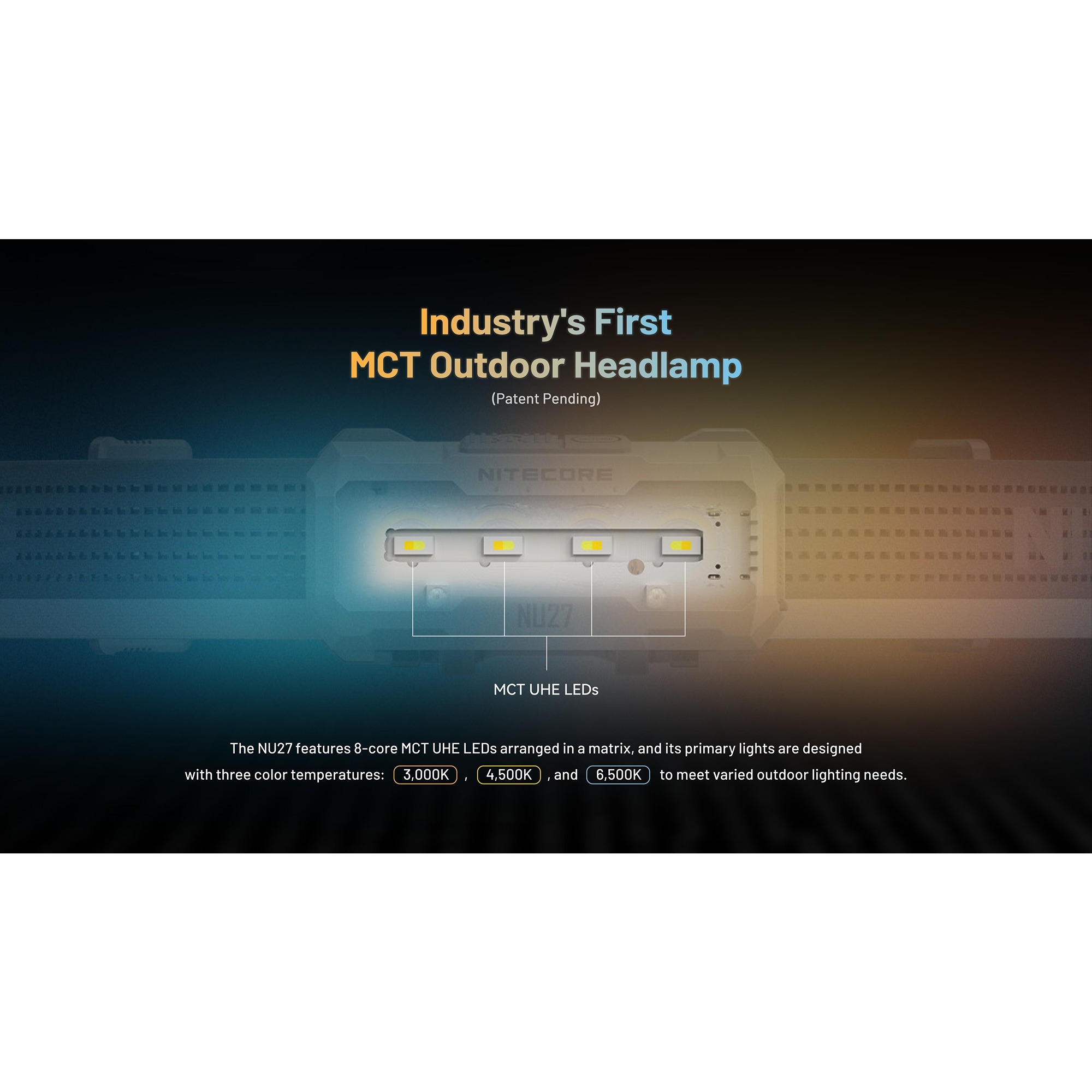 Nitecore NU27 MCT er en allsidig og innovativ Nitecore hodelykt, utviklet for friluftsentusiaster som ønsker fleksibel belysning i skiftende omgivelser. Den er ideell til fotturer og camping. Med opptil 600 lumen kombinerer den høy ytelse med lav vekt.