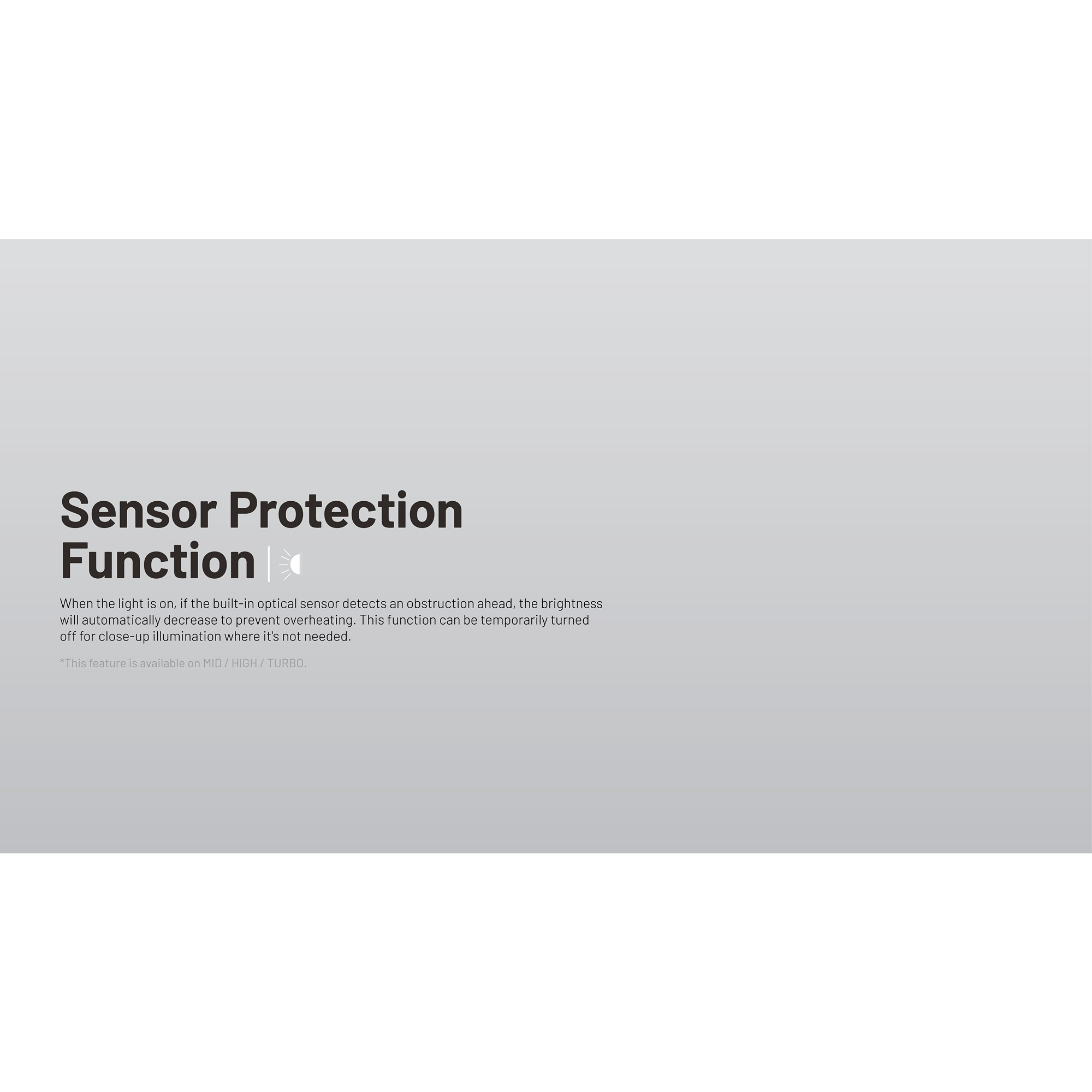 • sensor protection-funksjon senker automatisk lysstyrken ved hindringer tett på linsen og øker sikkerheten i bruk.