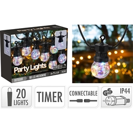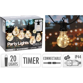 Kvik-køb LED Party Lysslynge 9,5 m, 20 LED Pærer, Varm Hvit - Kan Forlenges