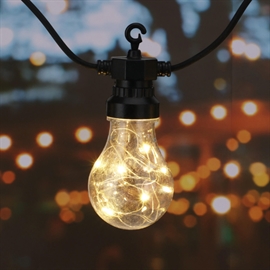Kvik-købLED Festlyslenke 9,5 m 20 LED-pærer, Varmhvit - Uttrekkbar