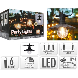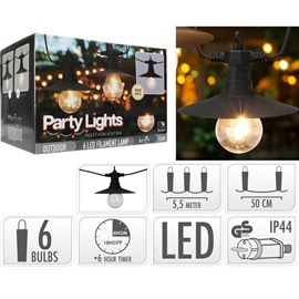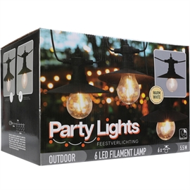 Kvik-købLED Party Lysslynge 2,5 m, 6 LED Filament Pærer med Glatte Skjermer, Varm Hvit