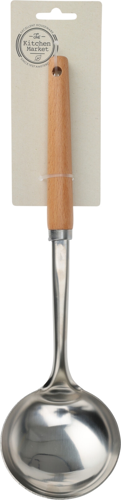 Suppeøse i rustfritt stål med trehåndtak. Et tradisjonelt kjøkkenredskap i enkelt og stilig design.
