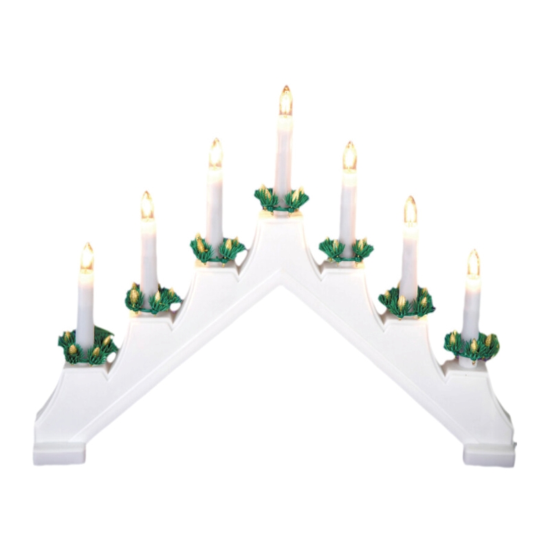 Med denne elegante lysestaken i hvit kan du enkelt tilføre en hyggelig atmosfære til ethvert rom i hjemmet ditt. Lysbroen er utstyrt med 7 myke lys. Den lange ledningen på 150 cm gjør det enkelt å plassere lysestaken akkurat der du ønsker, og den praktiske av/på-knappen gir deg full kontroll over lyset. Lysbroen er ideell å ha stående i vinduskarmen når de mørke tidene kommer, til glede både innenfra og utenfra.