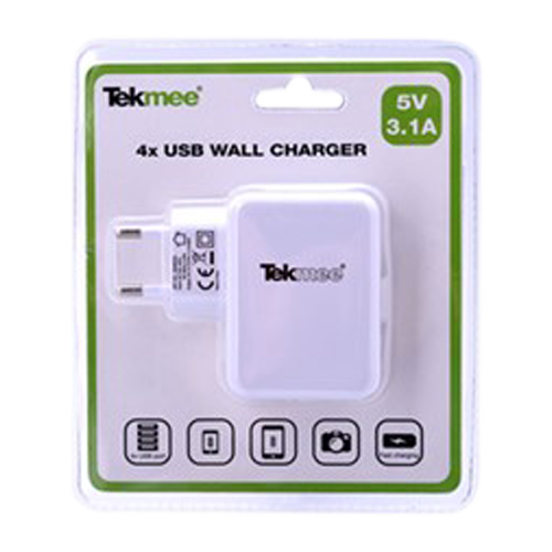 Produkt:  Tekmee 220V USB-lader med 4 uttak 3,1Ah