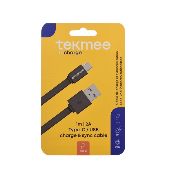 Produkt:  Tekmee Sort USB-C-kabel 1m flat