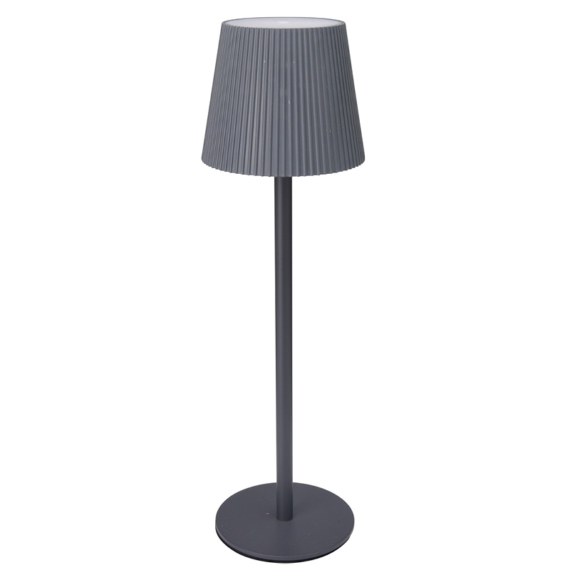 Flott oppladbar grå bordlampe med skjerm