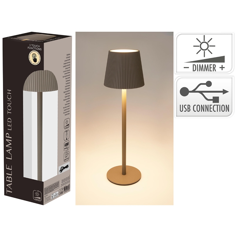 Trådløs Bordlampe med Touch og Dimmer H: 36 cm, Lys Brun