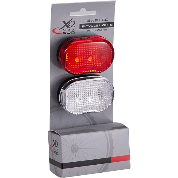 Få maksimal synlighet og sikkerhet i trafikken med dette XQ Max Pro sykkellyssettet, som består av en klar LED-frontlys og en rød LED-baklys. Begge lys har 3 kraftige LED-er, som sikrer sterk belysning og høy synlighet i mørket.